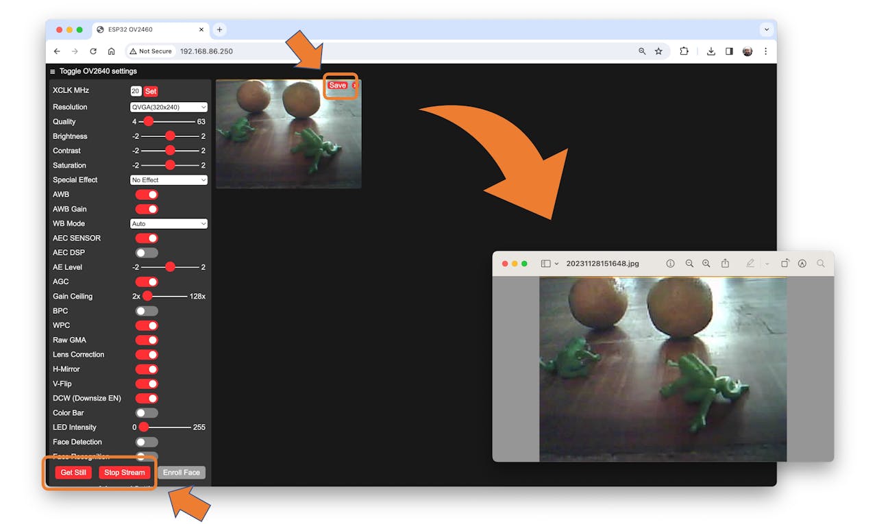 You can capture images using the XIAO, your phone, or other devices. Here, we will use the XIAO with code from the Arduino IDE ESP32 library.