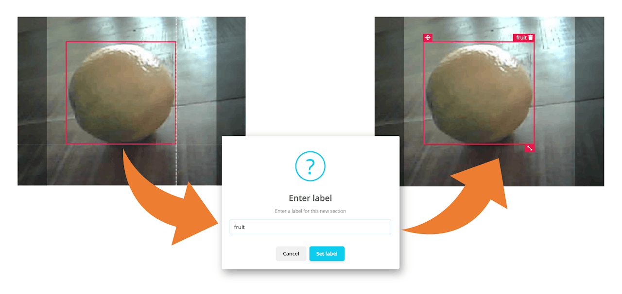 Starting with the first image of your unlabeled data, use your mouse to drag a box around an object to add a label. Then click Save labels to advance to the next item.