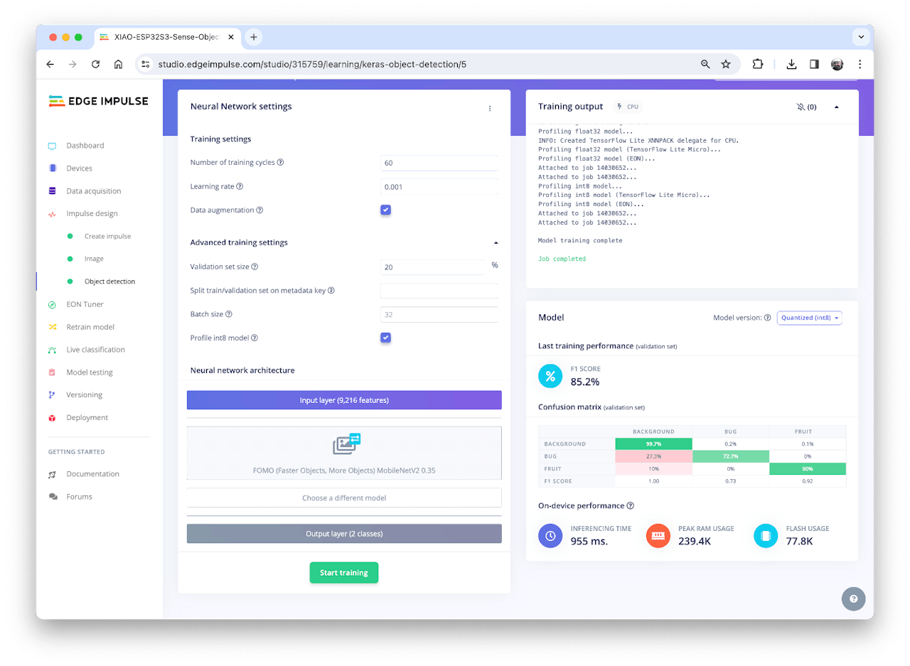 Edge Impulse launched in 2022, FOMO (Faster Objects, More Objects), a novel solution to perform object detection on embedded devices, such as the Nicla Vision and Portenta (Cortex M7), on Cortex M4F CPUs (Arduino Nano33 and OpenMV M4 series) as well the Espressif ESP32 devices (ESP-CAM, ESP-EYE and XIAO ESP32S3 Sense).